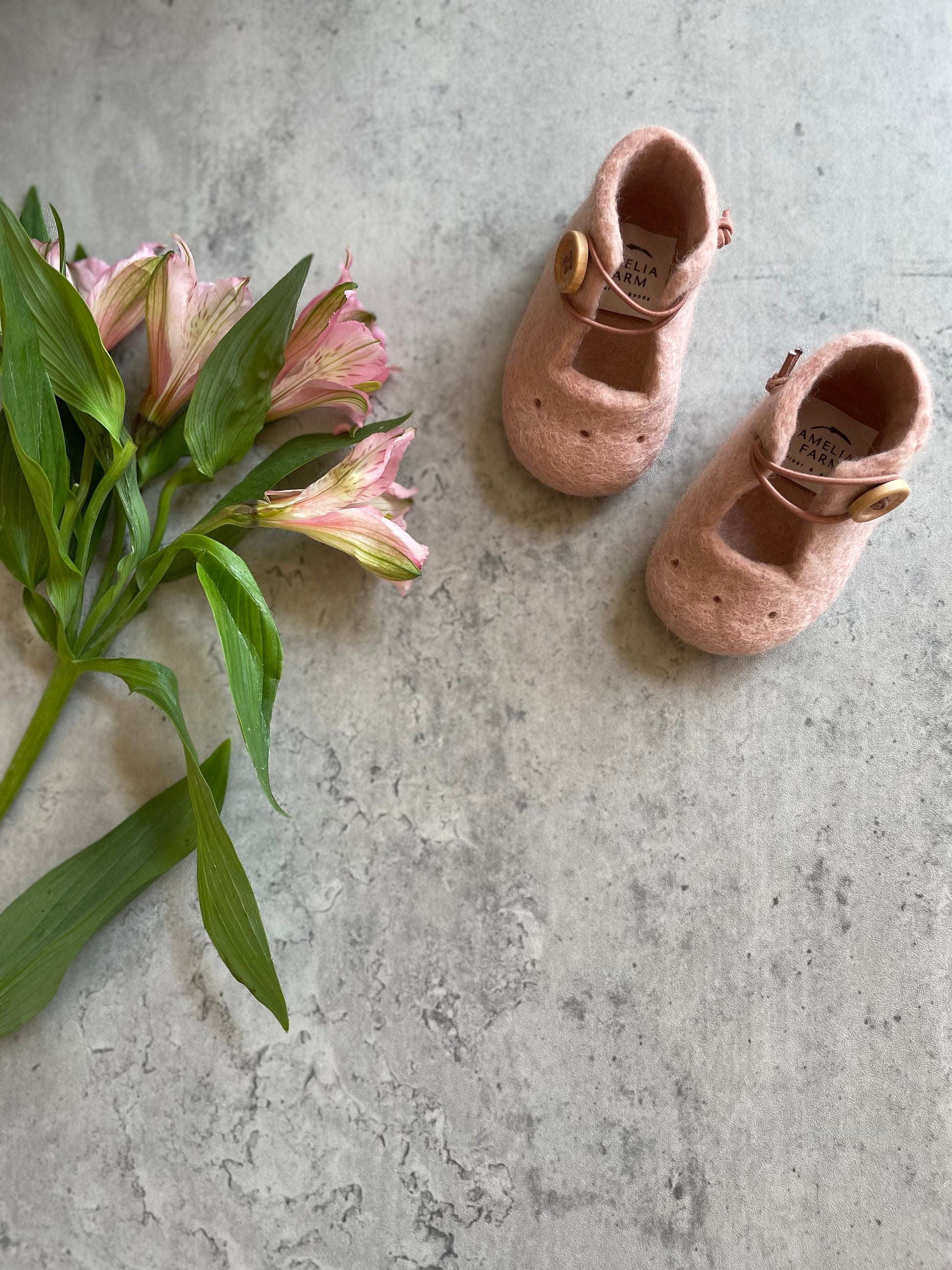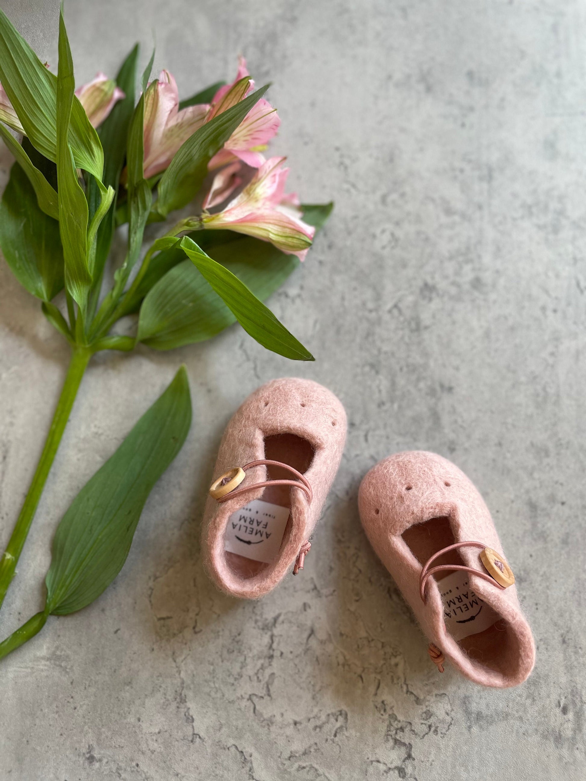 Beautiful, cozy felted heirloom shoes by Amelia Farm. These are handcrafted with wool from the heritage breeds of sheep on our farm in Amelia, VA.