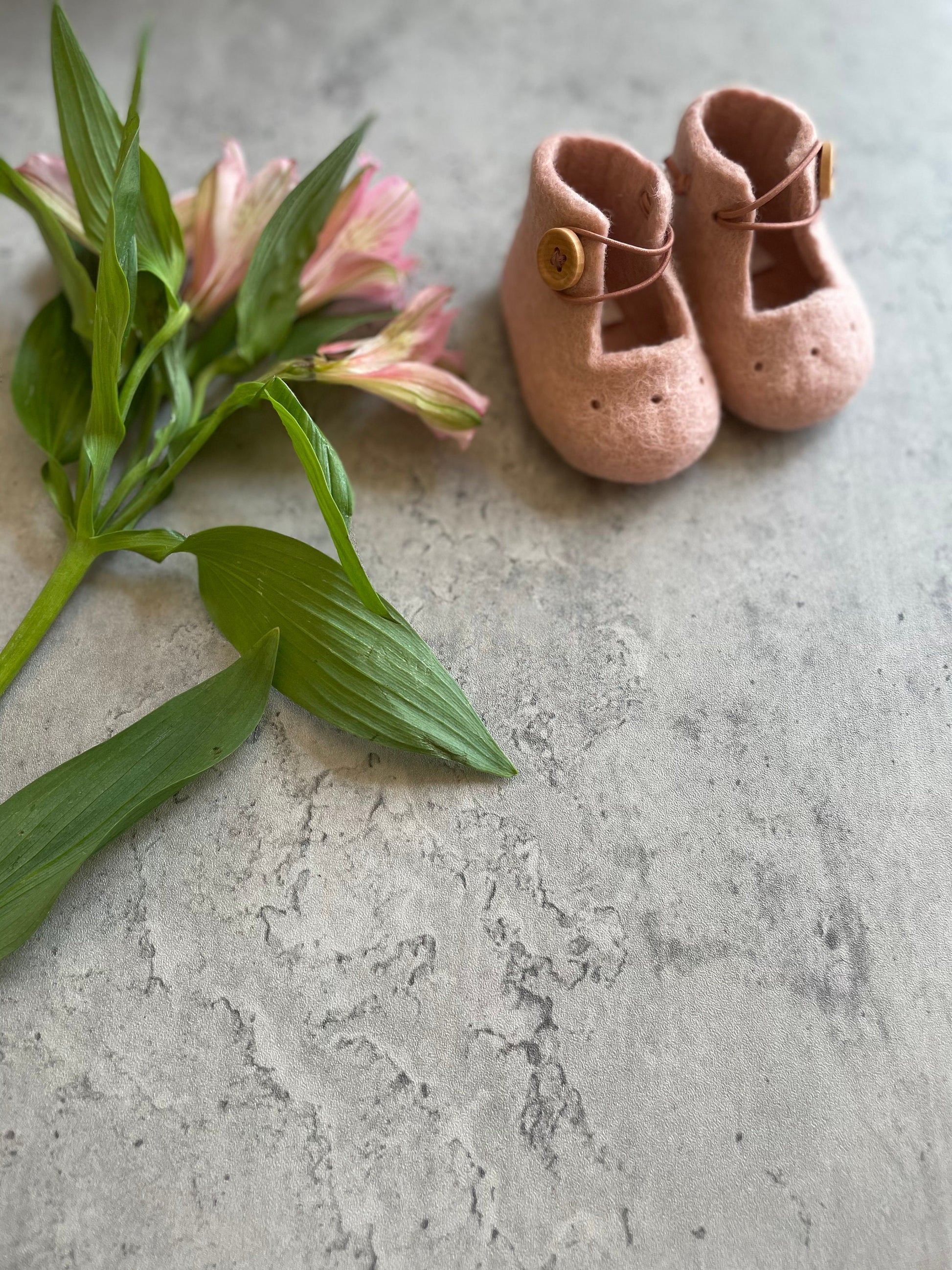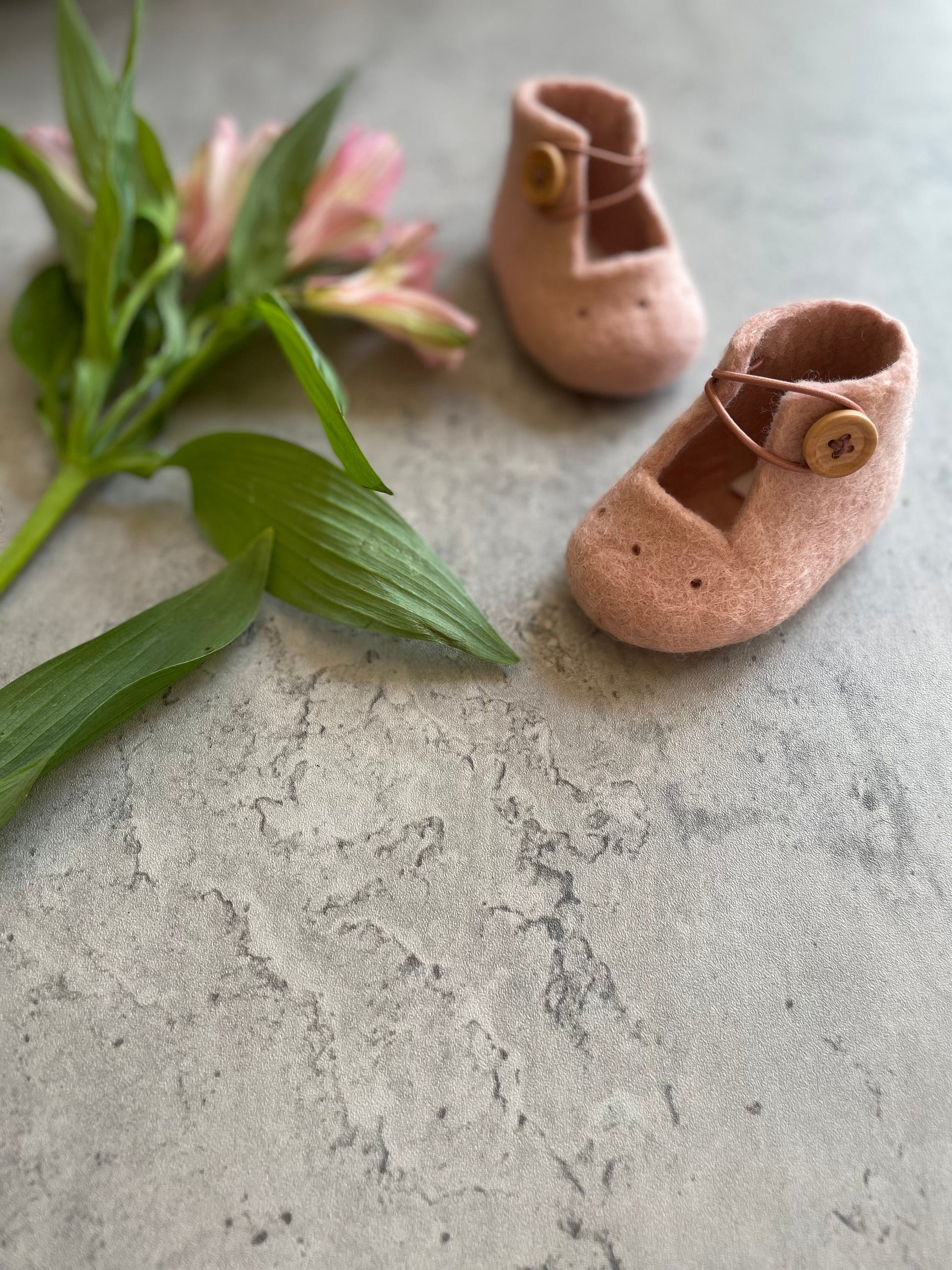 Wool is a natural fiber, which keeps feet warm in colder months and lets them breathe in warmer months. They are perfect in each season. Felted shoes are naturally lightweight, durable, water-resistant, hypoallergenic, and ever so soft. Eco-friendly. These shoes are sure to become a beautiful keepsake to be passed down. The shoes shown in the photo are in size 0, or 8.5cm...perfect for newborns.