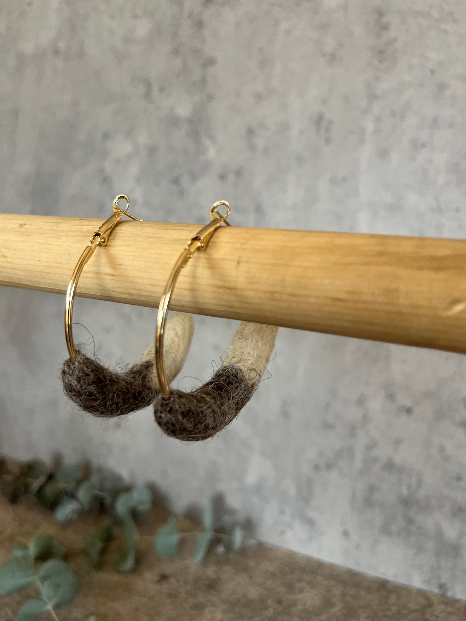 Designed with our heritage sheep wool and alpaca fibers, these lightweight and one-of-a-kind statement earrings add a colorful touch to an everyday outfit.