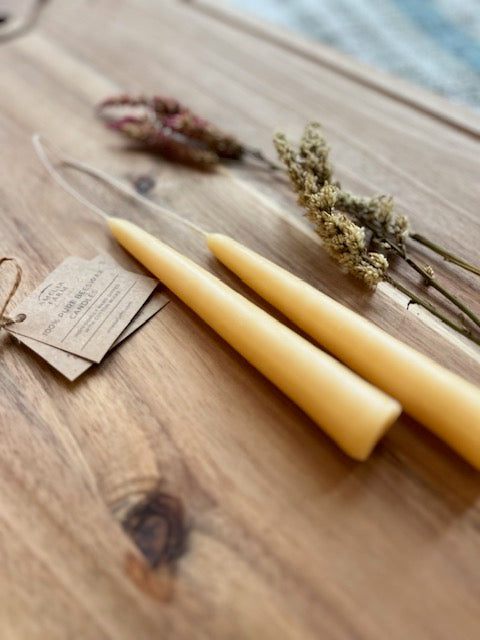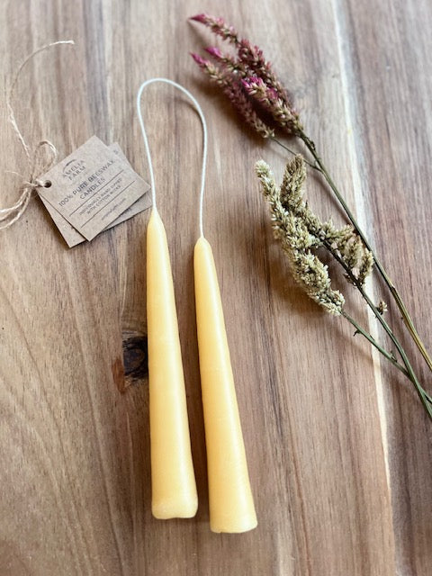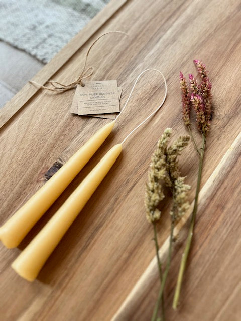 Hand-Dipped Natural Beeswax Taper Candles - Set of 2