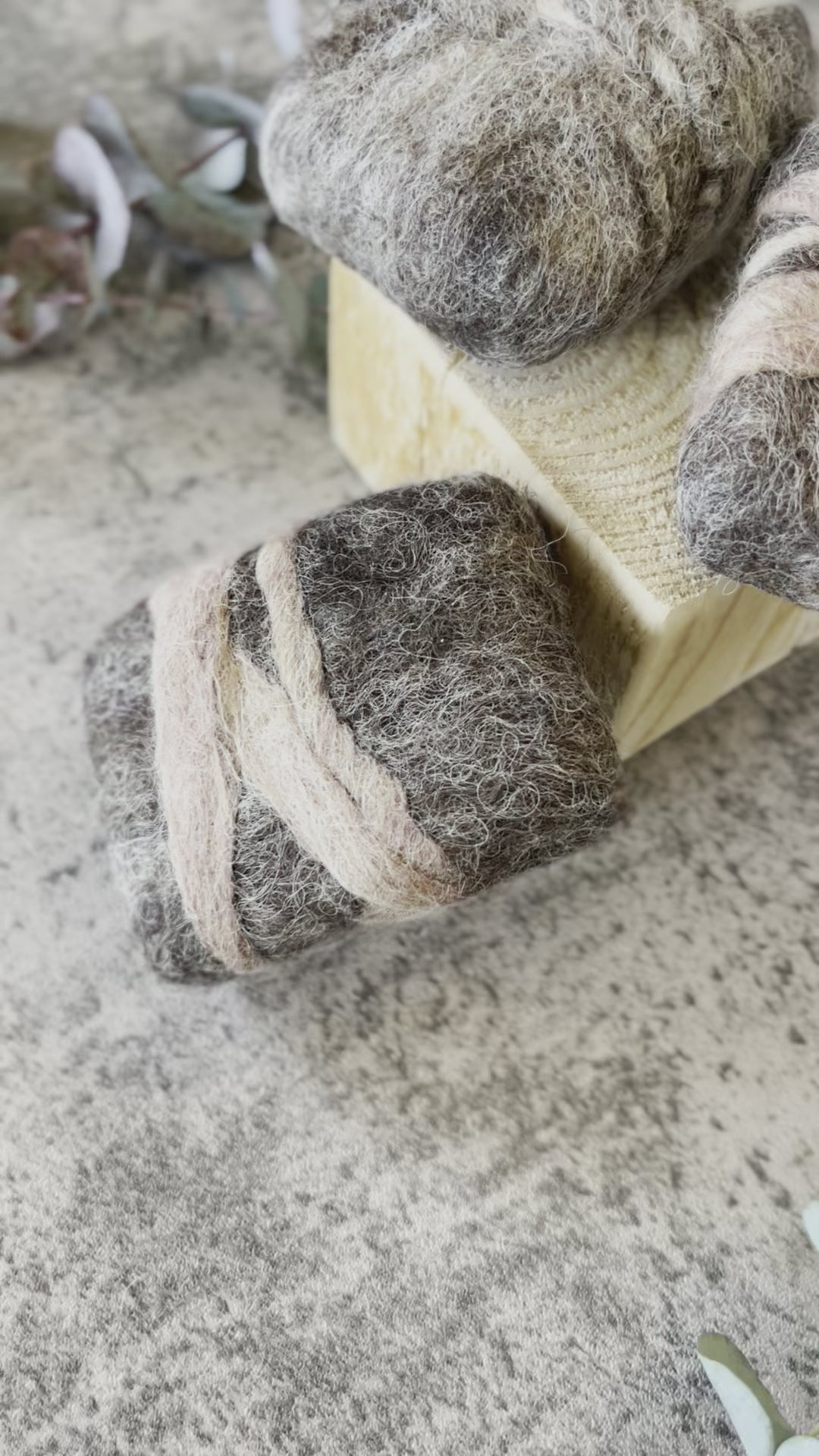 These beautiful soaps are handmade with the heritage sheep wool and alpaca fibers from our farm. They are a soap + wool washcloth/loofa in one. Handmade, natural soaps from 100% vegetable oil base and real essential oils are individually felted to create a unique design.