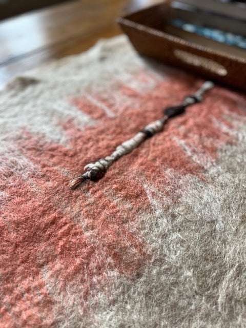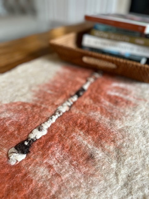 All-natural art for the collected home. This hand-made felted wool runner was artistically made using natural sheep wool and alpaca fibers from our farm.