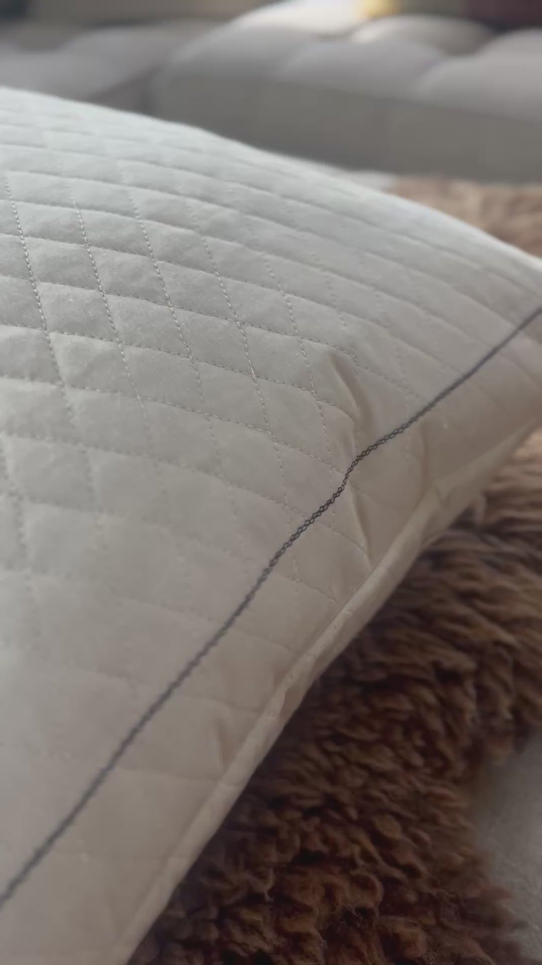 Included: 20x42" quilted cotton pillow insert with zipper and filled with 100% Organic Wool from the farm.