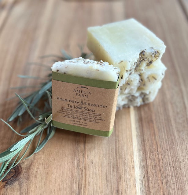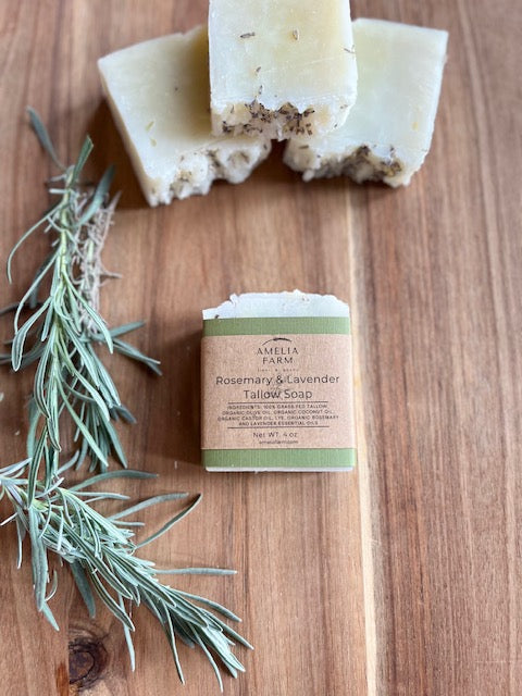 Natural Grass-Fed Tallow Soap- Rosemary & Lavender