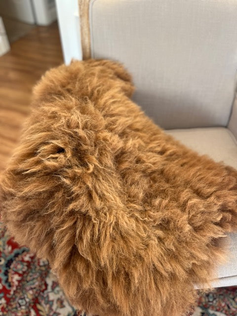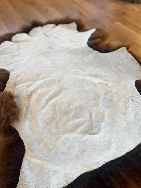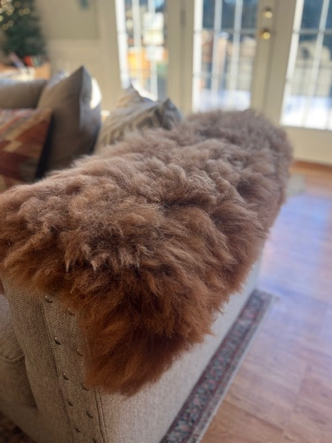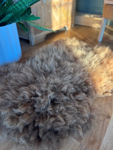 Our sheepskins are a natural product and crafted by hand which will result in variances in color, size, and texture and are not considered defects. They may have repairs or imperfections on the backside that do not affect the beauty of the sheepskin. If there are butcher cuts, I've chosen to make it part of the story and have woven the holes.